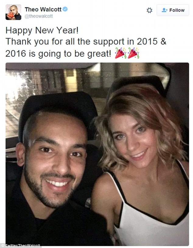 | Ngôi sao của Arsenal Theo Walcott cùng vợ Malanie ra ngoài đón giao thừa. |