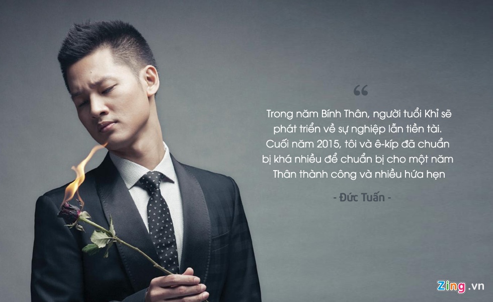 Ca sĩ Đức Tuấn không hề e ngại hay lo lắng khi bước vào năm tuổi: "Tôi đang ấp ủ nhiều dự định phát triển sự nghiệp trong năm Bính Thân 2016, trong đó có những sản phẩm âm nhạc mới hay việc tổ chức live show cá nhân". Ngoài ra, divo của làng nhạc Việt cũng chưa có ý định kế hôn: "Cuộc sống vui vẻ, được làm những gì mình thích đã là hạnh phúc, chứ hôn nhân không phải là đích đến mang đến niềm vui, hạnh phúc như mọi người vẫn nghĩ". |