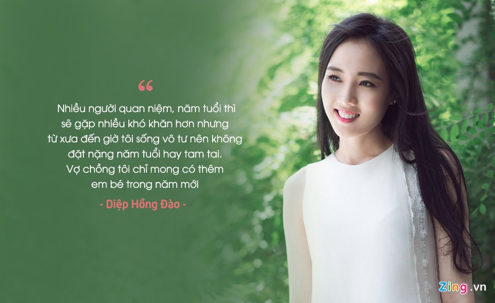 Nhiều người thường bảo năm tuổi phải kiêng kỵ vì lo sợ những điều xui xẻo nhưng tôi không nghĩ vậy. Tôi sẽ nhảy vào lĩnh vực âm nhạc với tư cách đạo diễn, tiếp tục đóng phim và ấp ủ kế hoạch làm phim. Tết năm nay gia đình tôi được đoàn tụ khi em gái cũng đã vào Sài Gòn. Lần đầu tiên các thành viên trong nhà đón Tết ở Sài Gòn nên khá háo hức. Chúng tôi dự định nấu bánh chưng và giữ các phong tục của ngoài Bắc. Tôi sẽ đưa bố mẹ và em gái chúc Tết người thân, bạn bè ở thành phố này". |