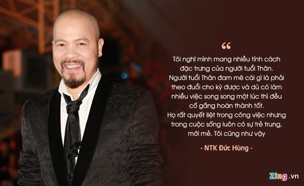 Người Việt mình hay đề cao tuổi Ngựa, tuổi Dê mà xem nhẹ tuổi Khỉ thế nên mới có câu “Người ta tuổi Ngọ, tuổi Mùi/ Mà sao tôi lại ngậm ngùi tuổi Thân”. Tôi sinh năm 1968, tuổi con Khỉ nhưng lại sinh đúng giờ Dần, mà tiếp sau câu ca dao đó, các cụ lại bảo “Tuổi Thân thì mặc tuổi Thân, nếu đẻ giờ Dần thì sướng hơn tiên”. Sướng hơn tiên thì tôi không dám nhận nhưng nhìn lại chặng đường cuộc đời, tôi thấy mình là người gặp nhiều may mắn. Từ nhỏ đến lớn, tôi đã không phải lo về vấn đề cơm áo gạo tiền. Khi lập gia đình, mọi thứ cũng diễn ra tự nhiên, thuận quy luật. Hiện tại thì công việc ổn định, gia đình êm ấm, bản thân cũng xây dựng được một thương hiệu riêng. Với tôi, như thế là hạnh phúc ". |