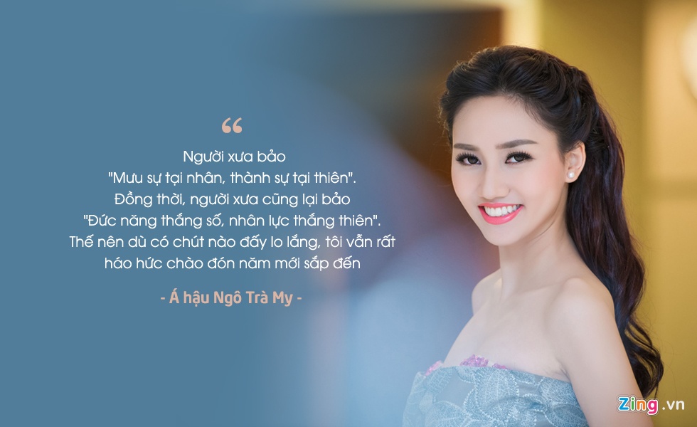 | Ngô Trà My trở thành Á hậu Hoàn vũ Việt Nam vào tháng 10/2015. Cô gái tuổi Nhâm Thân cho biết danh hiệu này đã thay đổi cuộc đời mình rất nhiều