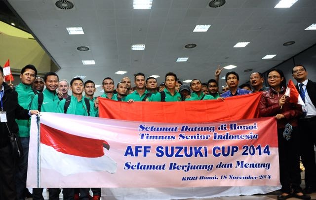 Thầy trò HLV Alfred Riedl là đội khách có mặt sớm nhất tại Hà Nội để làm quen với khí hậu và điều kiện tập luyện trước thềm AFF Cup 2014. Do đến sớm hơn 2 ngày so với lịch của BTC nên các cầu thủ Indonesia sẽ ở tại khách sạn do Đại sứ quán nước này đặt trước. Sau đó, đến ngày 20/11 đội bóng xứ vạn đảo mới gia nhập làng VĐV AFF Cup tại một khách sạn 5 sao gần SVĐ Mỹ Đình.