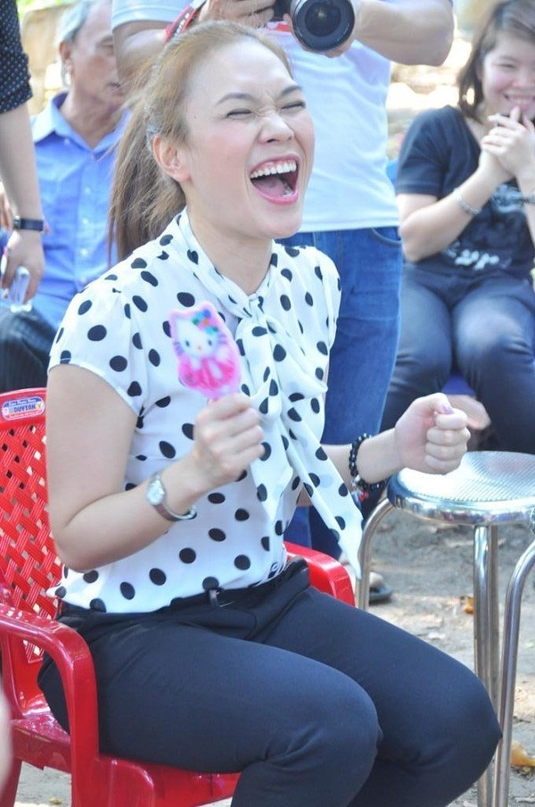 | Mỹ Tâm nổi tiếng với giọng cười "không đụng hàng" luôn khiến các fan thích thú và gần gũi hơn khi nàng "hả họng". |