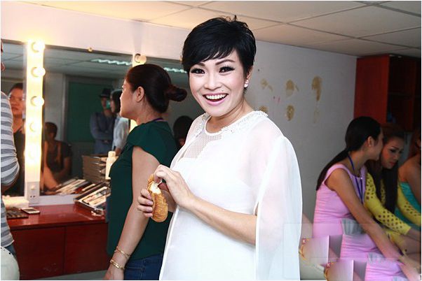 | Uyên Linh cũng ăn vội trước khi lên sân khấu ở hậu trường Vietnam Idol. |