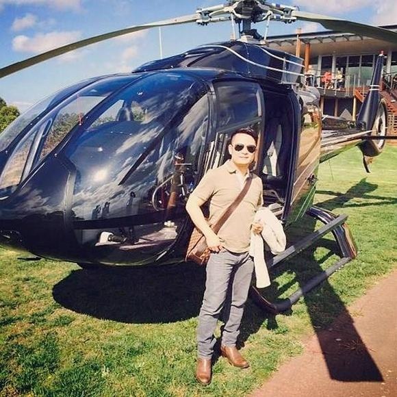 Đầu tháng 4 vừa qua, giọng ca Nơi tình yêu bắt đầu hào hứng khoe với người hâm mộ hình ảnh đứng bên trực thăng. Nam ca sĩ viết: "Lần đầu tiên bay máy trực thăng đi ăn trưa, quý phái thế chứ...".