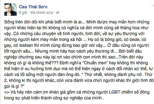 | Những chia sẻ của Cao Thái Sơn trên trang cá nhân. |