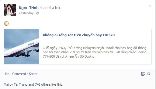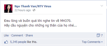 Trong ngày 25/3, một vài sao Việt cũng đã chia sẻ các đường link hay status, thể hiện sự cảm thông của mình tới những hành khách bất hạnh.