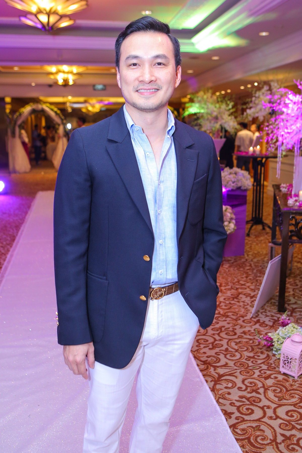 | Diễn viên Chi Bảo mặc lịch thiệp với trang phục trắng, áo vest tối màu bên ngoài phối ăn ý. Nam diễn viên là bạn bè thân thiết nhiều năm với cô dâu, chú rể. |