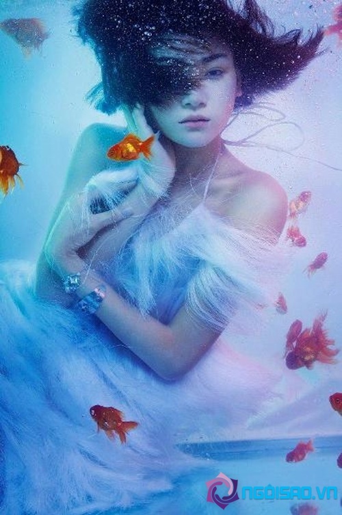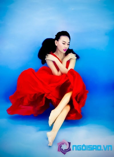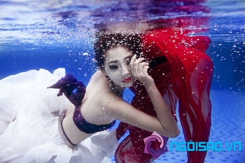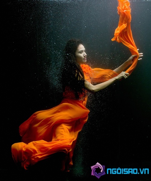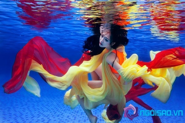 | Võ Hoàng Yến không hể tỏ ra khó chịu khi phải nín thở, kết quả là 1 tấm ảnh hoàn hảo ra đời. |