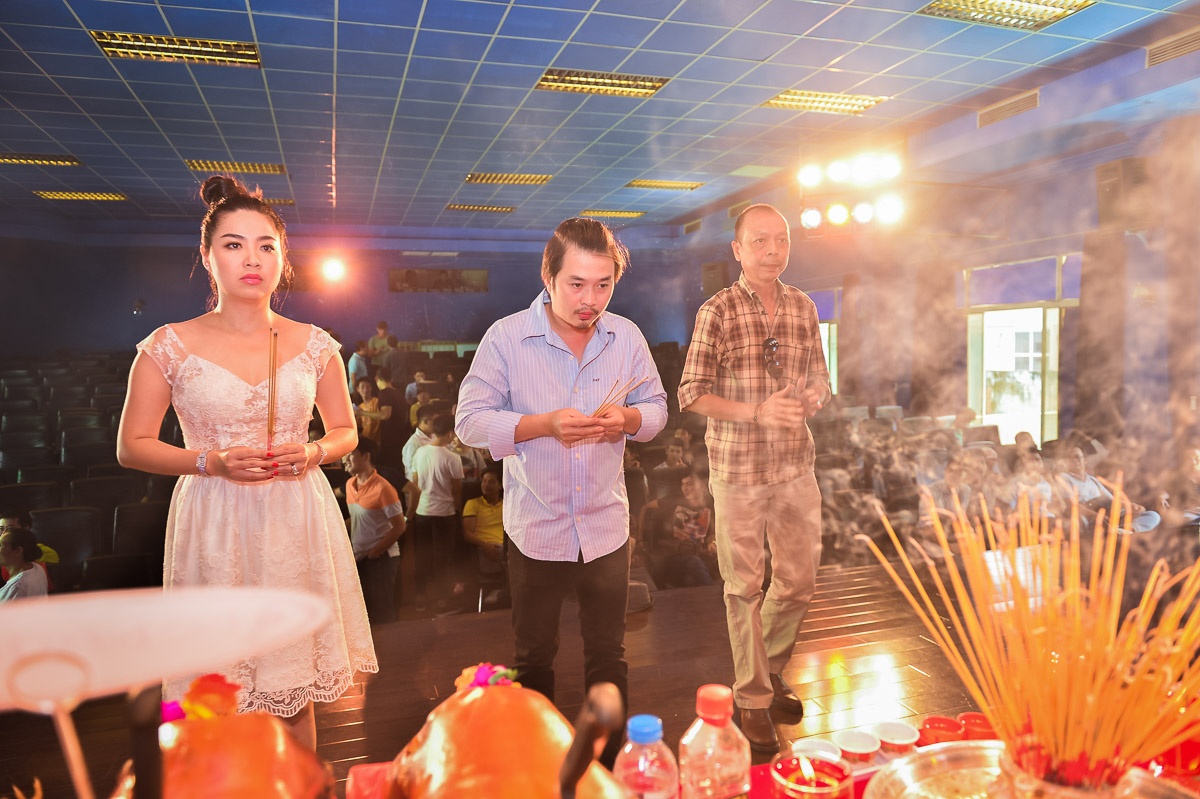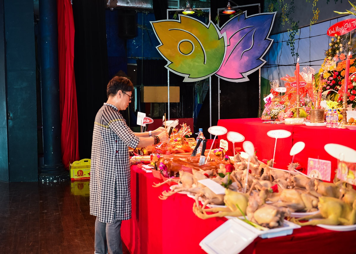 Khoảng 10h, ngày 24/9, tại sân khấu Idecaf, TP HCM, lễ giỗ Tổ diễn ra dưới sự chỉ đạo của NSƯT Thành Lộc. Nam diễn viên tài năng có mặt từ sớm, anh chuẩn bị hoa và đồ cúng rất chu đáo. |