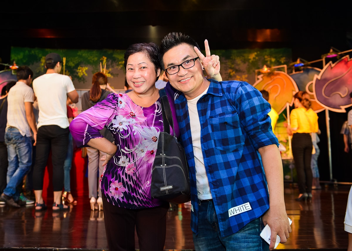 MC Đại Nghĩa xuất thân từ sân khấu kịch của nghệ sĩ Thành Lộc. Anh chụp ảnh cùng diễn viên gạo cội Phi Phụng. |