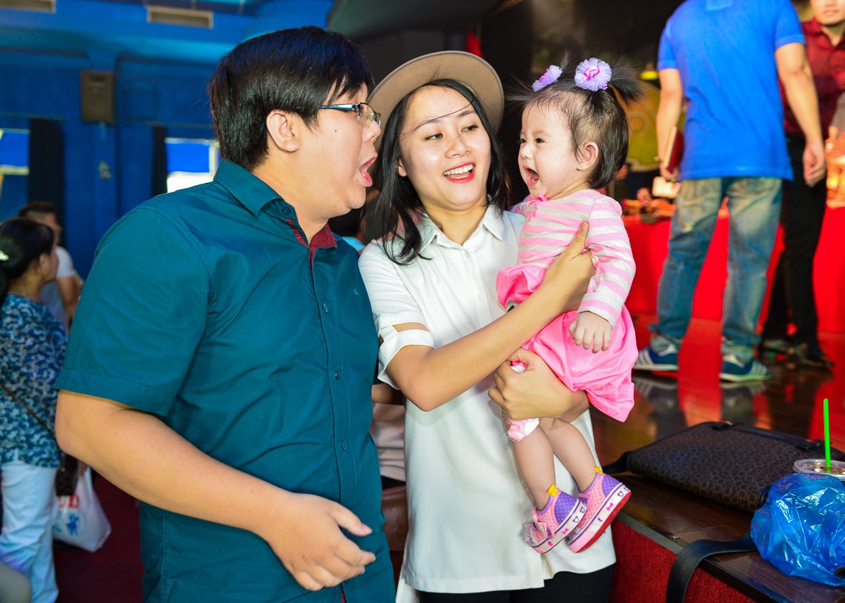 Vợ chồng Gia Bảo đưa con gái đến lễ giỗ Tổ. |