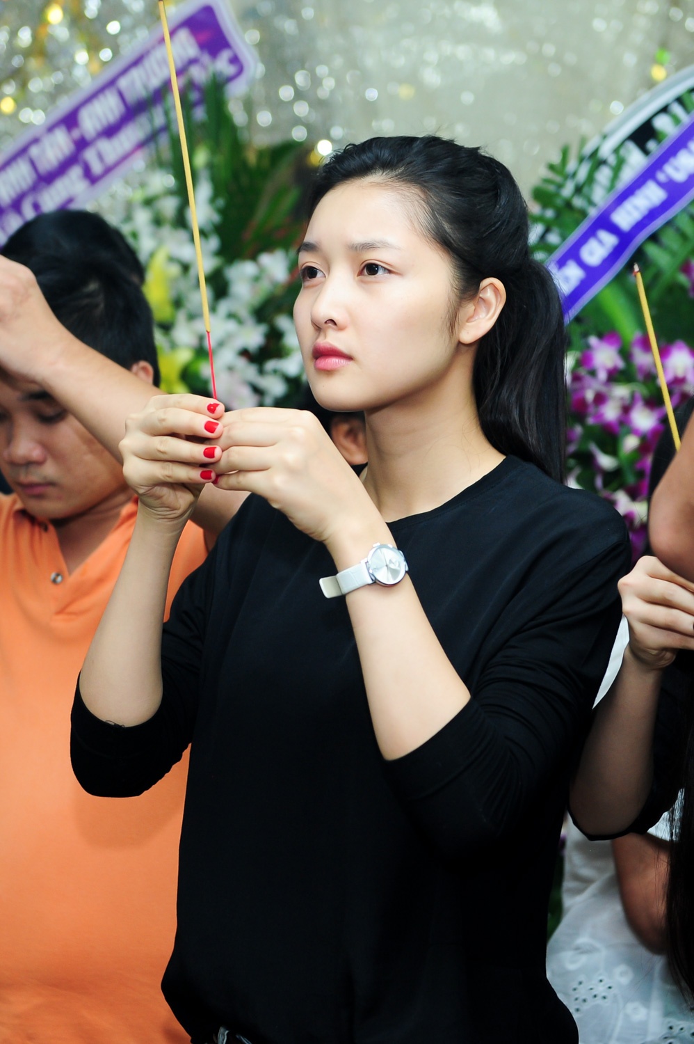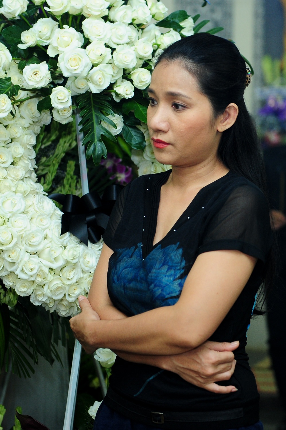 | Nữ diễn viên Cát Tường cũng đến viếng lúc nửa đêm. |