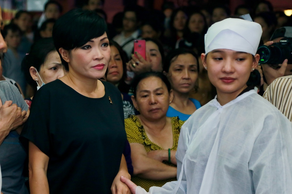 Khuya 7/5, Ngân Khánh và nhiều đồng nghiệp trong showbiz vẫn tới nhà tang lễ chùa Vĩnh Nghiêm, TP HCM thắp nhang tiễn biệt nam diễn viên kiêm người mẫu.
