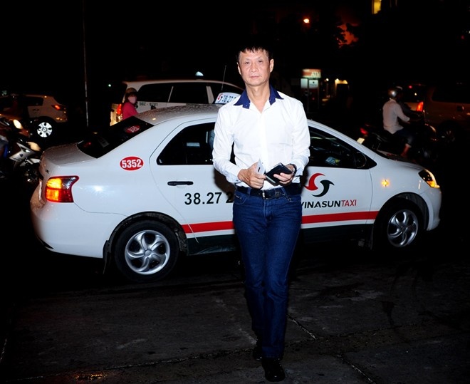 | Trong một lần khác, đạo diễn đình đám một thời của điện ảnh Việt từ taxi bước xuống thảm đỏ của Người dẫn chương trình 2013 trong khi các nghệ sĩ khác sang trọng bên xế sang. |