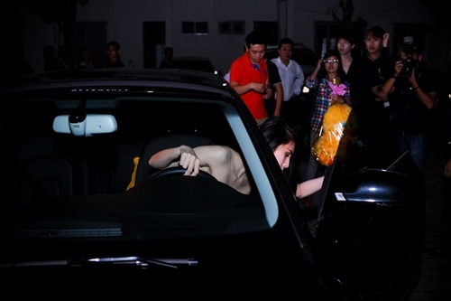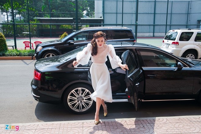 Trước đó, trong buổi cuối ghi hình vòng Audition trong chương trình X Factor, bà xã của Cường Đô la được tài xế riêng đưa tới trường quay trên chiếc xế hộp màu đen sang trọng quen thuộc.