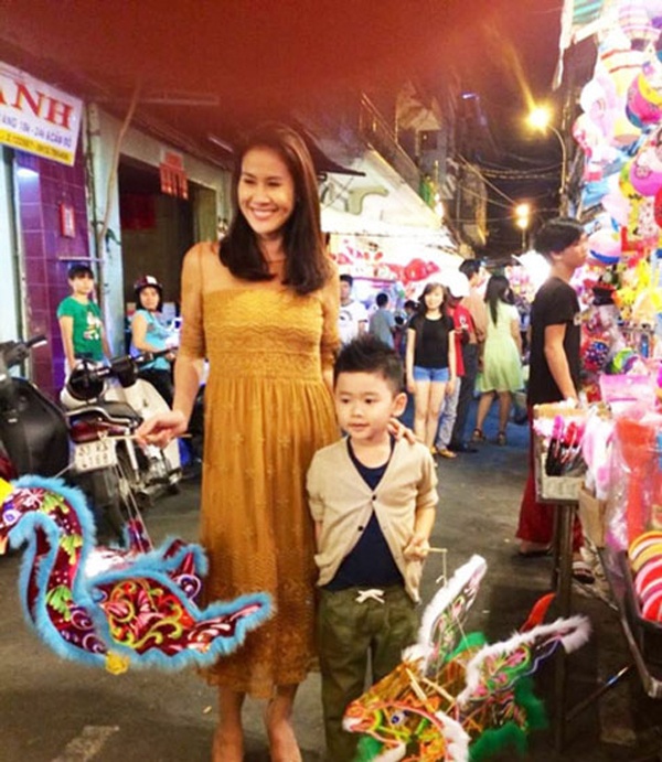 | Thúy Hằng: Cựu người mẫu muốn các con học và hiểu thêm về cuộc sống xung quanh nên đã đưa hai con tới dự một đêm hội trăng rằm cùng trẻ em làng SOS ở Hà Nội. |