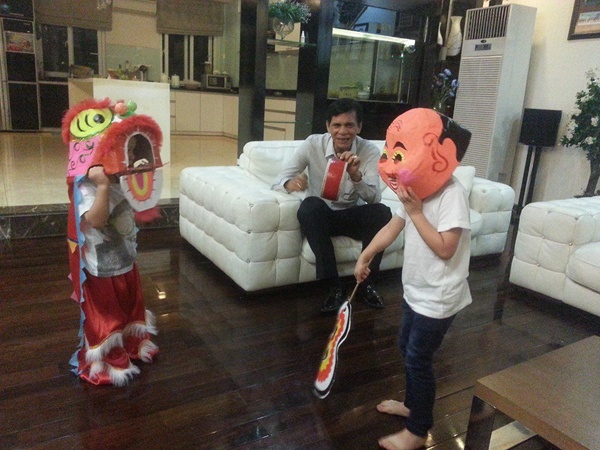 | Ngày 7/9, một người thân của Cường Đôla và Hà Hồ chia sẻ trên trang cá nhân hình ảnh Subeo cùng ông ngoại đón Trung thu tại nhà riêng. Cậu nhóc và một người bạn đồng trang lứa đóng vai chú Tễu, múa lân... trong phòng khách khá vui vẻ. Loạt hình này nhanh chóng thu hút sự chú ý của người hâm mộ gia đình Hồ Ngọc Hà. |