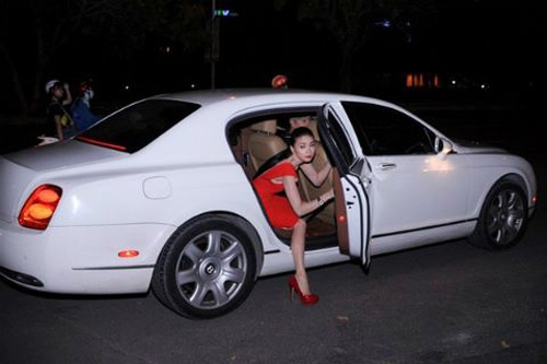 | Nhiều người cho rằng, Quỳnh Nga đang dùng xế hộp để đánh bóng tên tuổi của mình. |