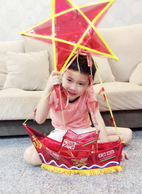 | Trên trang cá nhân, Thân Thúy Hà chia sẻ khoảnh khắc hạnh phúc, vui vẻ bên con trai. Nữ diễn viên cho biết, cô và “tiểu hoàng tử” chọn cách đón trung thu ở nhà cùng các chị em họ. Con trai rất vui khi được mẹ và các cô chú tặng lồng đèn ông sao, thuyền thủ công. |