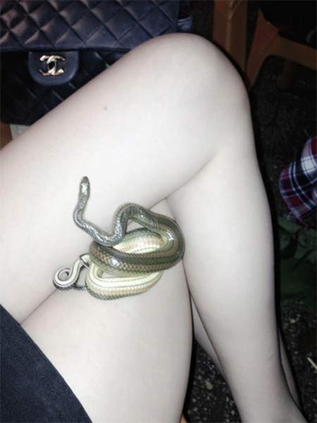 Cô gái này đặc biệt gây ấn tượng với bộ ảnh chụp cùng rắn thật với khuôn mặt lạnh lùng không chút sợ hãi. |