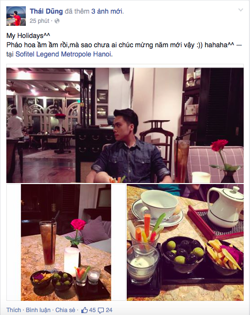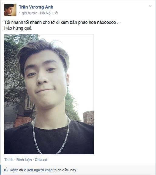 | MC Thái Dũng cũng dí dỏm viết trên trang cá nhân: "Pháo hoa ầm ầm rồi mà sao chưa ai chúc mừng năm mới vậy". |