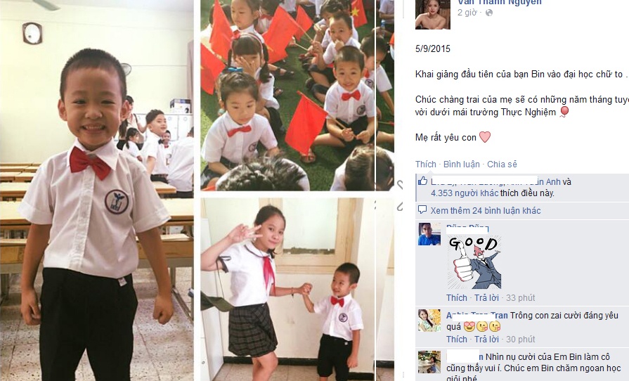 Sao Việt hào hứng đưa con đến trường ngày khai giảng