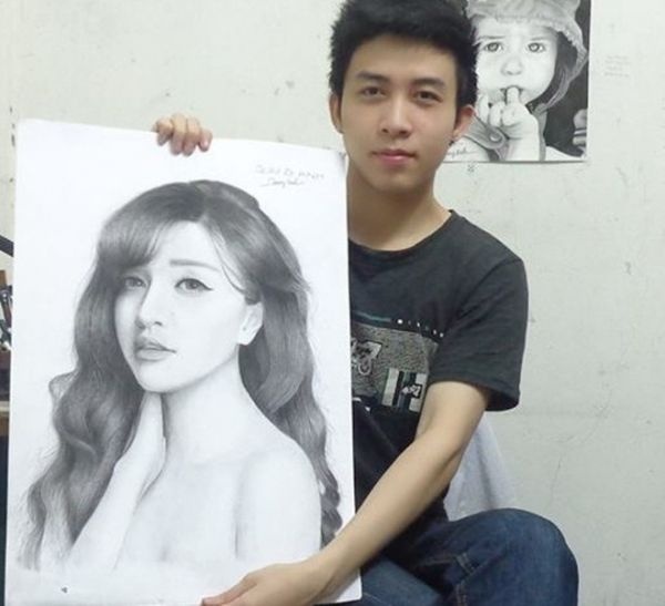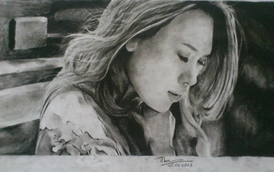 | Quang Anh - chàng trai học chuyên ngành kiến trúc nhưng có tài vẽ tranh truyền thần - đã vẽ tặng ca sĩ Bùi Bích Phương tấm chân dung sống động. Anh mất 15 tiếng để hoàn thành tác phẩm này. Mái tóc bồng bềnh, mượt mà của nhân vật là điều chàng trai này hứng thú nhất mỗi khi vẽ. Bức tranh được vẽ trên khổ A2, từng gây sốt cộng đồng mạng một thời. |