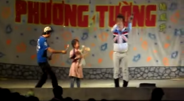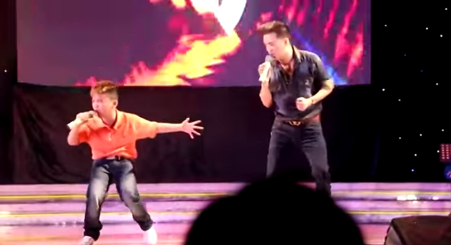 | Sau phút đầu có vẻ rụt rè, thậm chí không dám nhìn thẳng xuống khán giả, nhưng đến khi cất tiếng hát đầu tiên, cậu nhóc dần phiêu với âm nhạc. Nhận được những tràng pháo tay cổ vũ của khán giả cũng như sự động viên của Đan Trường, cậu bé bắt đầu vừa hát vừa biểu diễn rất nhiệt tình. Dù giọng hát còn ngọng nghịu, nhưng fan nhí này vẫn giữ đúng nhịp điệu của từng câu hát. Sau khi kết thúc màn trình diễn có một không hai này, cậu bé cũng chia sẻ với Đan Trường ước mơ làm ca sĩ của mình. |