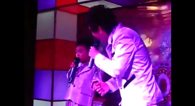 | Trong một lần trình diễn tại phòng trà, Đan Trường đã bất ngờ nhận được lời đề nghị song ca ca khúc Ngôi sao bay từ một fan nhí chỉ mới... 2 tuổi. Cậu bé đáng yêu và không kém phần bảnh bao trong bộ vest rất giống với thần tượng. Trước người hâm mộ nhí đặc biệt này, Đan Trường nhẹ nhàng dặn dò: "Chú với con mỗi người hát một câu nha". |