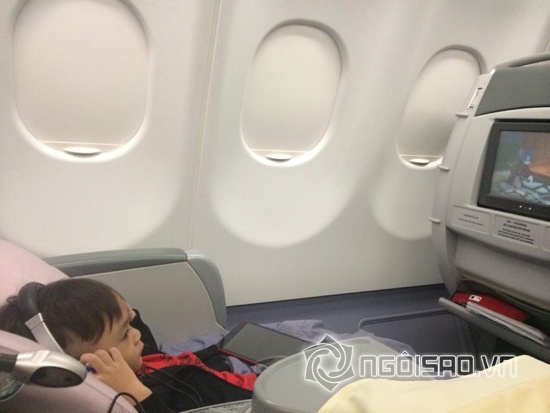 | Lần khác, Hà Hồ đi lưu diễn cùng ca sĩ đàn em Dương Triệu Vũ và chụp ảnh nhí nhanh ở khoang hạng thương gia. |