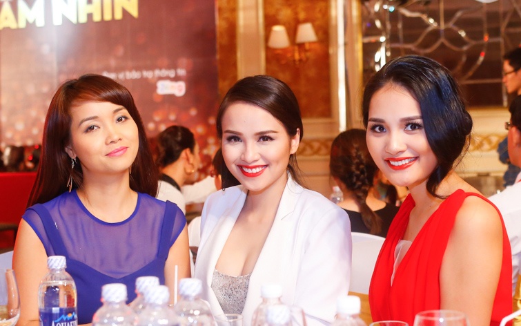 Mai Thu Huyền khoe dáng bên hai người đẹp Diễm Hương và Hương Giang. |