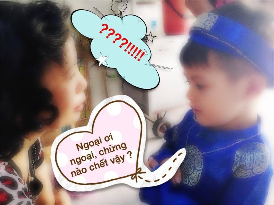 | Diễn viên Thanh Thúy lại gặp phải một tình huống dở khóc dở cười vì cậu con trai lém lỉnh. Cô viết: "Mùng 1 Tết, cu Phê mặt rạng rỡ, háo hức, hồ hởi chạy đến ngoại hỏi: Ngoại ơi ngoại, chừng nào chết vậy? Cả nhà bàng hoàng: Con nói cái gì??? Chừng nào chết vậy ngoại? Cả nhà sửng sốt: Sao con lại hỏi vậy??? Tại vì chết thì con được "chiền" lì xì á. Không ai hiểu chỉ 1 người mới hiểu! Thì ra anh í bị đớt chữ "t", chừng nào Tết thành ra chừng nào chết vậy ngoại!!!!". |