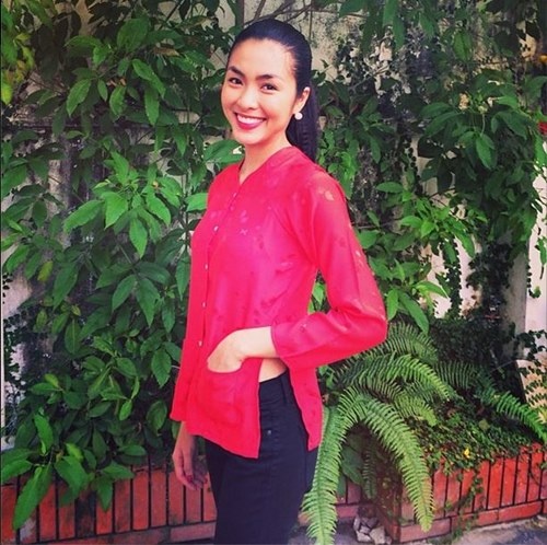 Tăng Thanh Hà gây bất ngờ khi chọn trang phục áo bà ba để mặc trong mùng 1 Tết và cùng chồng đi chúc Tết hai bên gia đình.