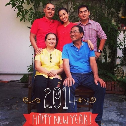 Ngọc nữ chụp ảnh cùng ba mẹ và các anh trai.