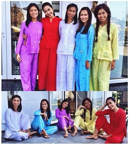 Cô cũng chụp ảnh với các chị em gái bên nhà chồng. Tất cả đều chọn mặc áo bà ba không khỏi khiến cư dân mạng thích thú khi nhìn ngắm.