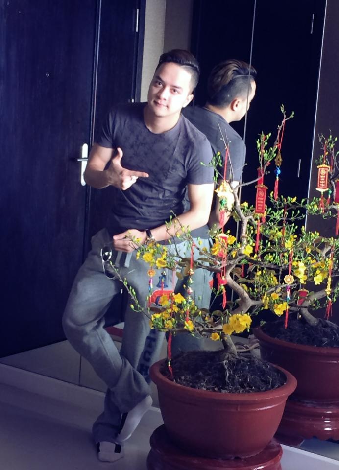 | Cao Thái Sơn không giấu được niềm vui khi cây hoa mà mình dày công lựa chọn để bày trong nhà đã nở hoa. Khoe hình ảnh mới, nam ca sĩ cho biết: "Mai nhà mình bắt đầu nở... Tết năm nay có ý nghĩa hay không là ở cây mai này đây". |