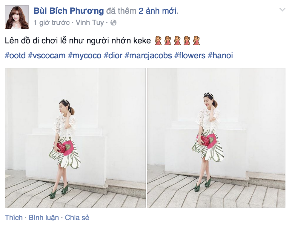 | Thời gian gần đây, Bích Phương đầu tư rất nhiều về ngoại hình và gu thời trang. Cô cũng tranh thủ tư vấn cho các fan cách chọn lựa trang phục để đi chơi dịp lễ. |