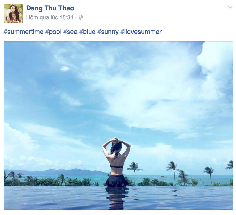 Hoa hậu Đặng Thu Thảo khoe dáng chuẩn với trang phục bikini gợi cảm khi nghỉ dưỡng tại một resort cao cấp. |