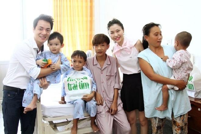 | Nhân dịp sinh nhật tuổi 31, ca sĩ Đăng Khôi cùng vợ Thủy Anh đã tới bệnh viện Tim Tâm Đức để thăm và trao quà cho 4 bé. Đây là các bệnh nhi nằm trong chương trình A Star With Heart của Quỹ hiểu về trái tim, được hỗ trợ phẫu thuật tim miễn phí. Đăng Khôi chia sẻ, anh luôn thấu hiểu và đồng cảm những khó khăn, vất vả của bậc làm cha làm mẹ khi nuôi dưỡng những mảnh đời thiếu may mắn. |