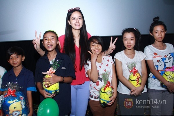 Sau đó, cô vẫn vui vẻ đi xem phim và trao quà trung cho các em nhỏ |