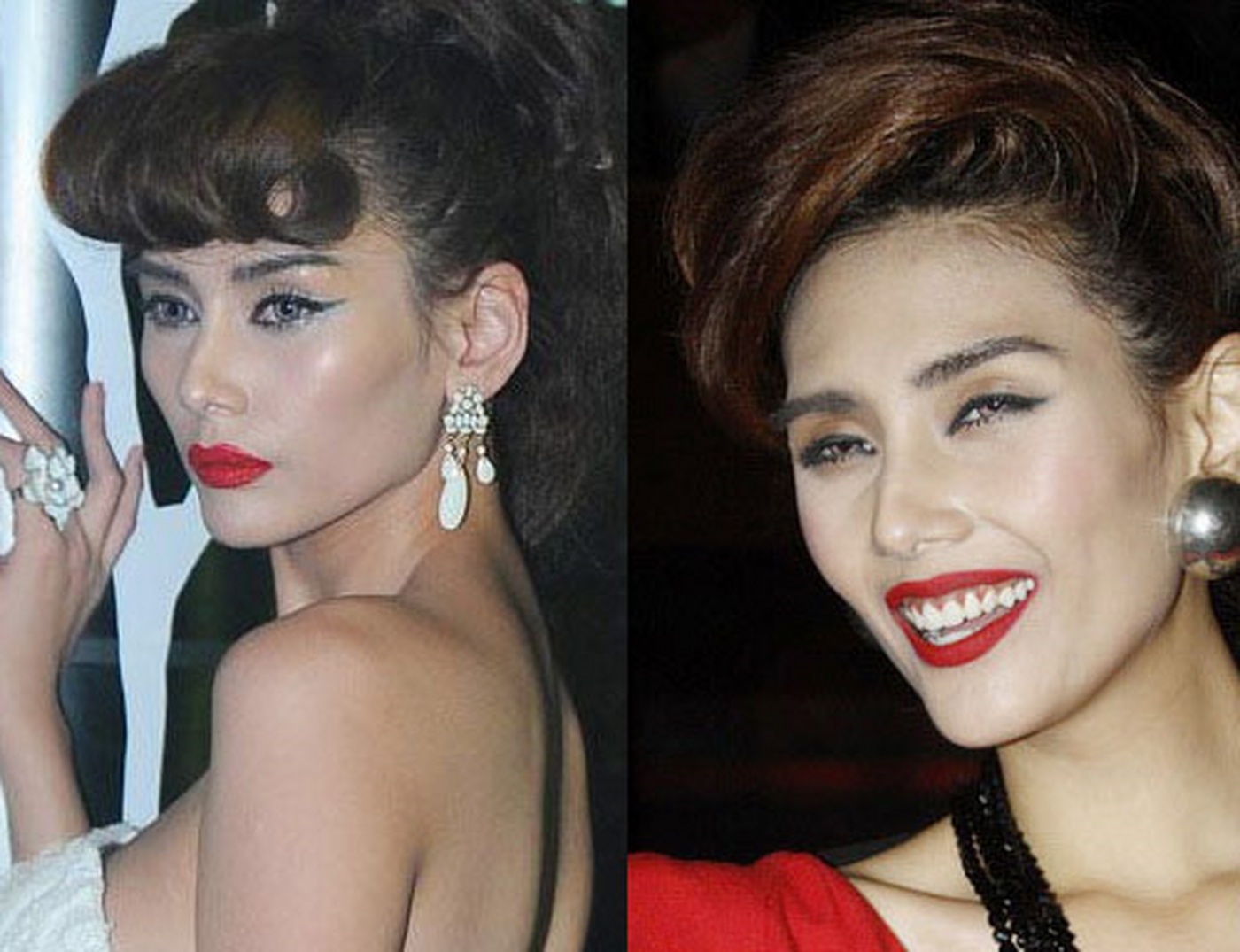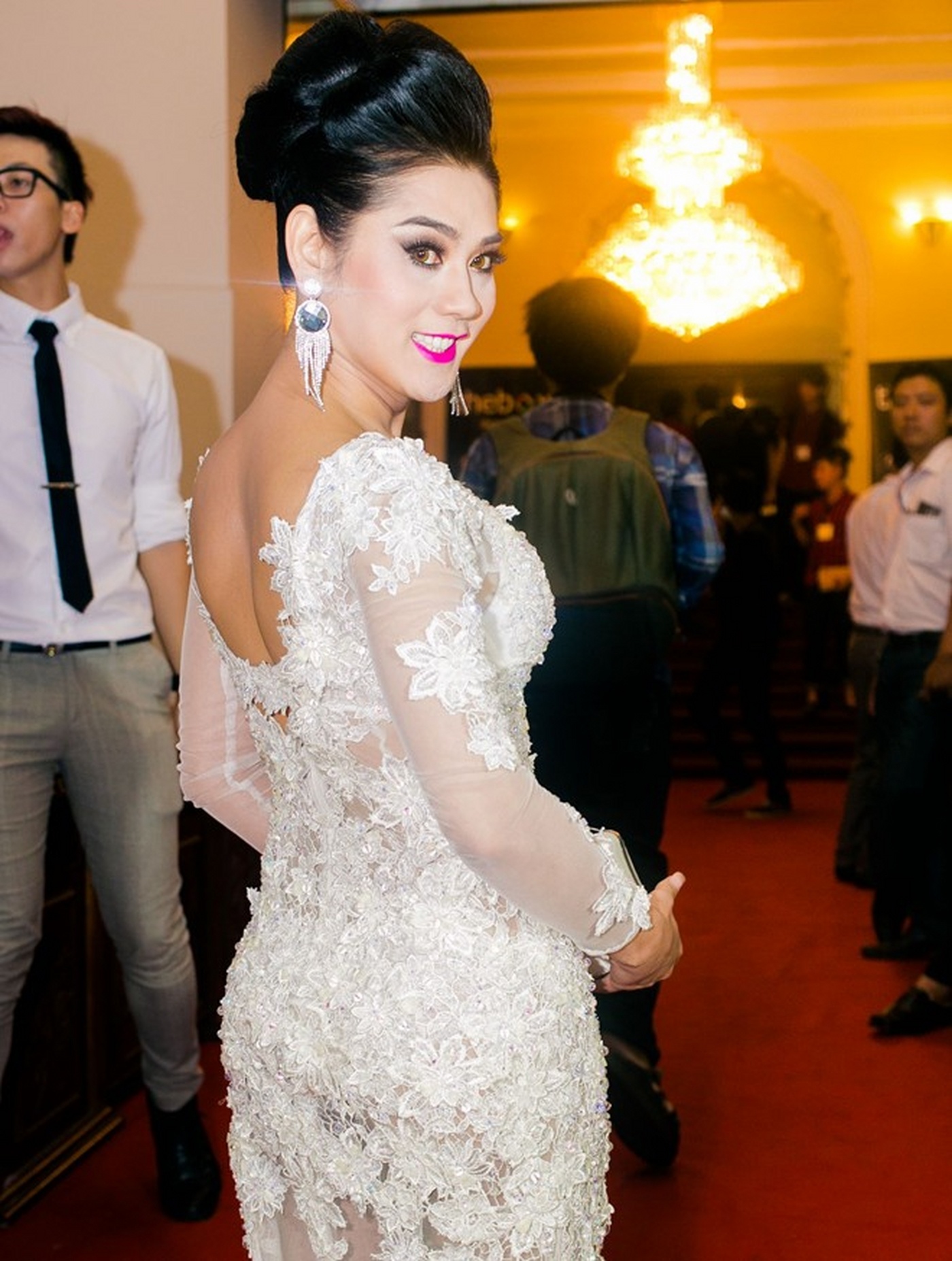 | Lâm Chi Khanh cũng là cái tên thường được nhắc trên mặt báo bởi khuôn mặt trắng đơ như tượng sáp. Trong một sự kiện, cô đánh phấn quá tay, lộ rõ sự đối lập giữa khuôn mặt trắng và lưng đen. |