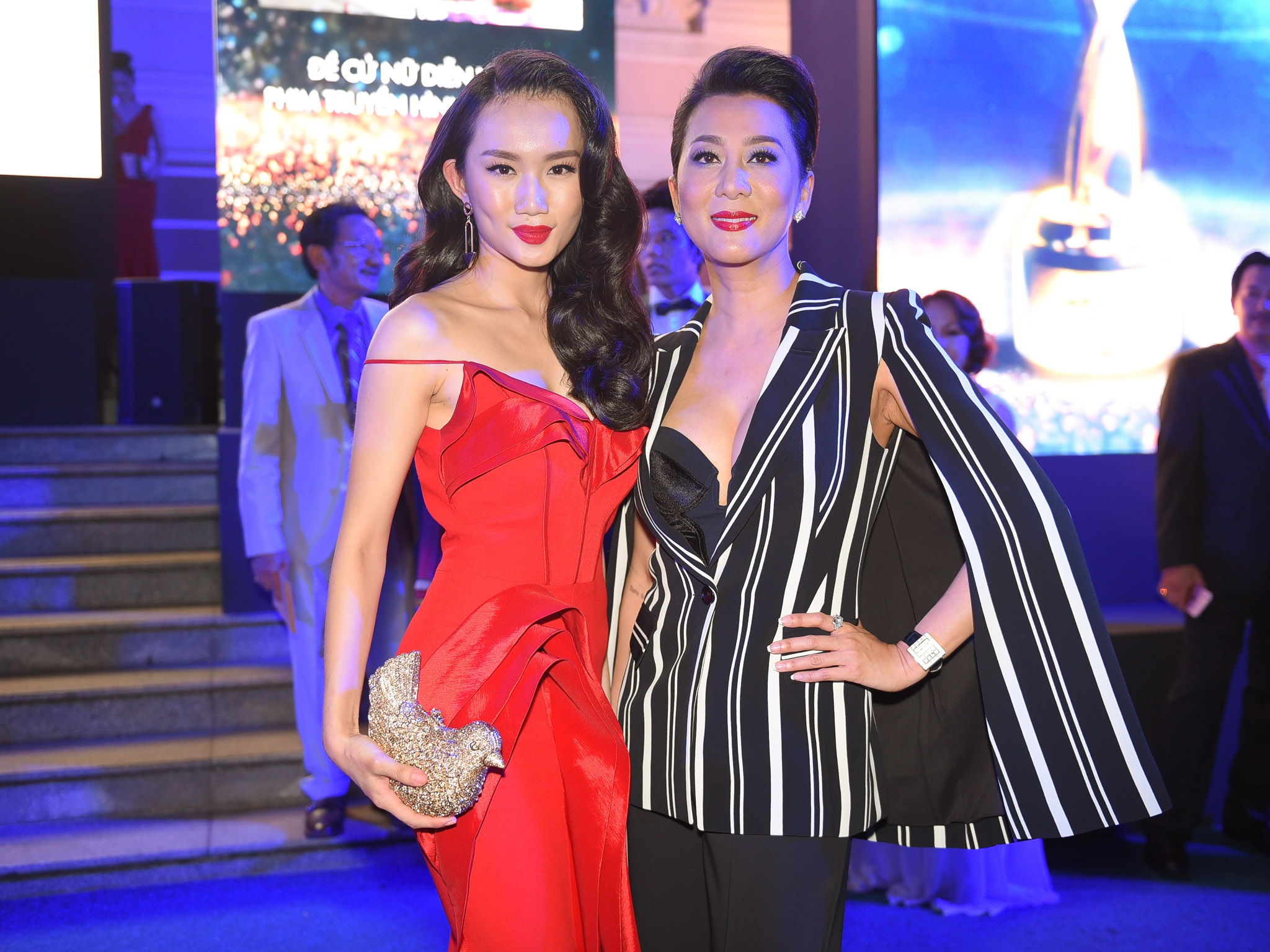 Kỳ Duyên mặc kín đáo nhưng vẫn toát lên vẻ quyến rũ. Nữ MC hải ngoại sánh bước bên vũ công - ca sĩ Hoàng Mỹ An. |