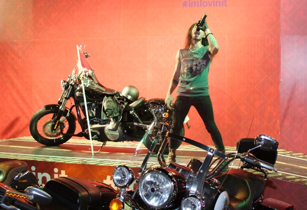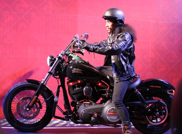 | Năm 2012, tại một buổi biểu diễn ở sân vận động Quần Ngựa, Hà Hồ làm nóng sân khấu khi xuất hiện với vẻ cực "ngầu" trên mô tô khủng. |