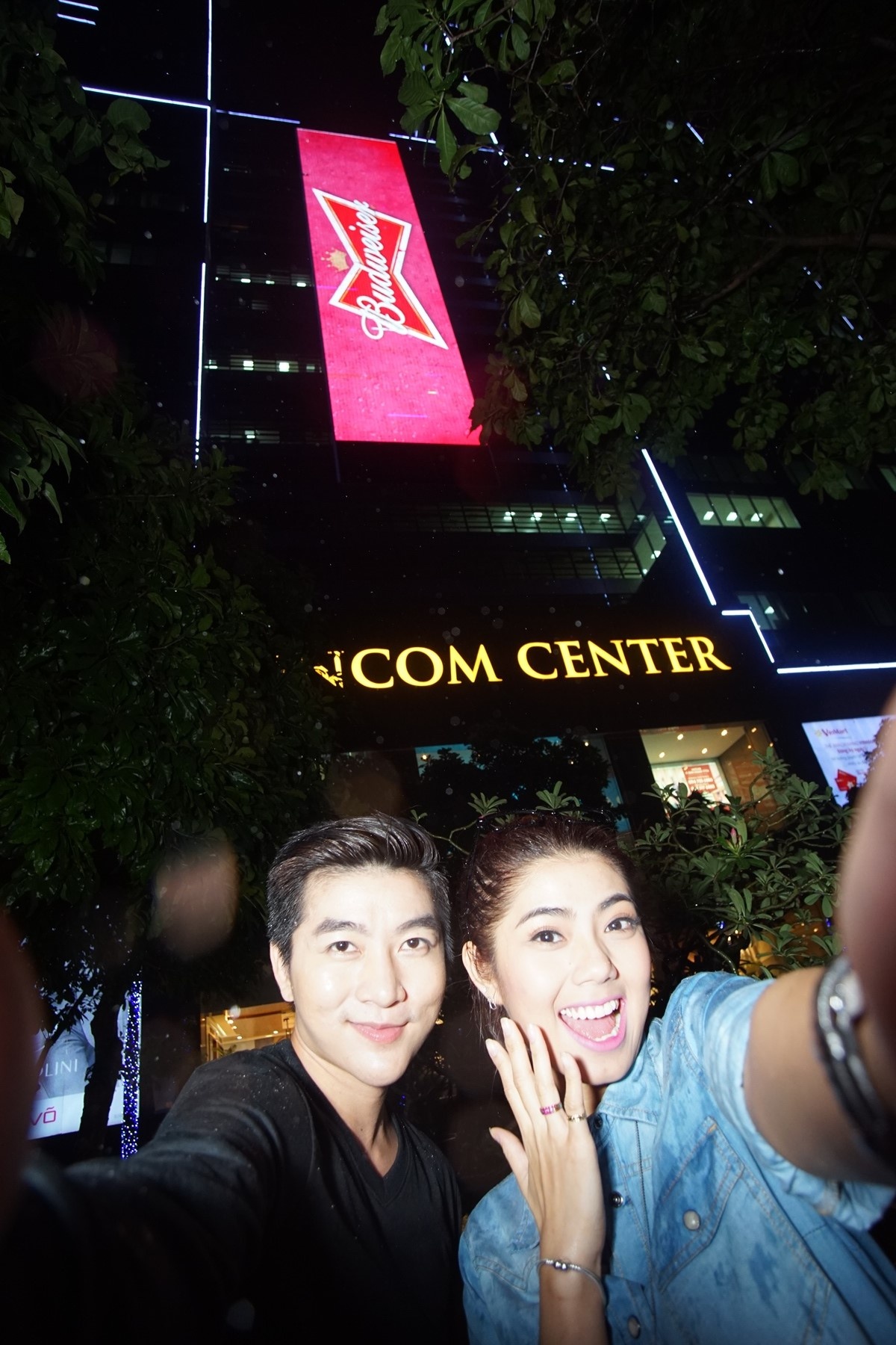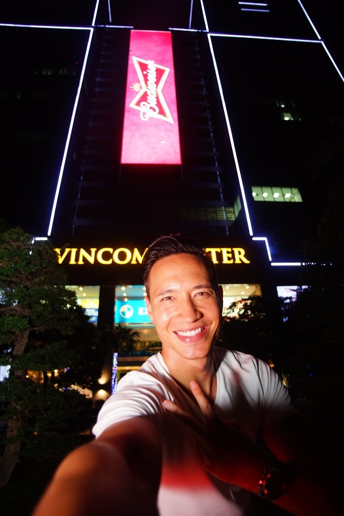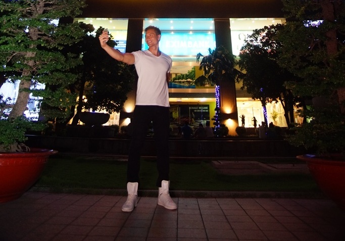 | Fan bắt gặp Kim Lý tươi tắn chụp ảnh selfie giữa trung tâm Sài Gòn, anh diện trang phục trắng-đen đơn giản nhưng khoe được vóc dáng chuẩn người mẫu. |