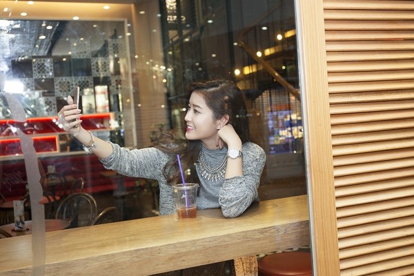 | Á hậu Huyền My bị bắt gặp đang tự sướng tại một quán café. Gương mặt trang điểm nhẹ nhàng và nụ cười tươi nghịch ngợm của cô ghi điểm với fan. |