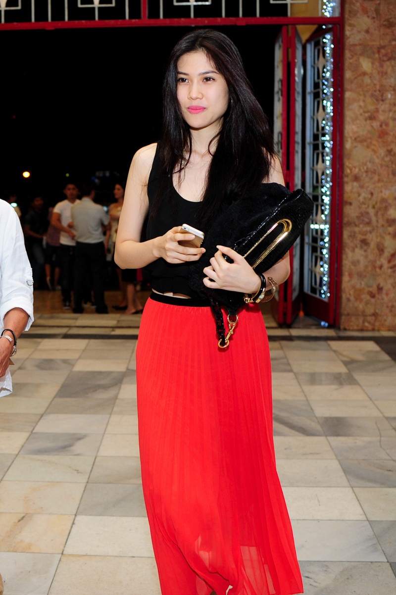 | Siêu mẫu Thu Hằng một mình đi xem ca nhạc. |
