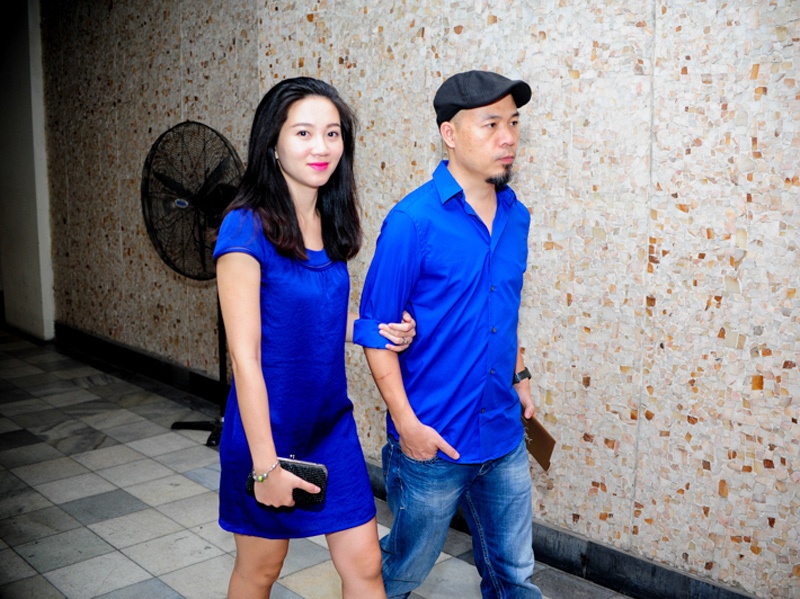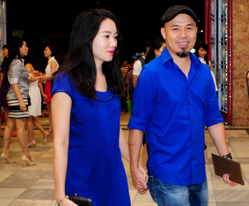 | Nhạc sĩ Huy Tuấn khoác tay bà xã xinh đẹp. |