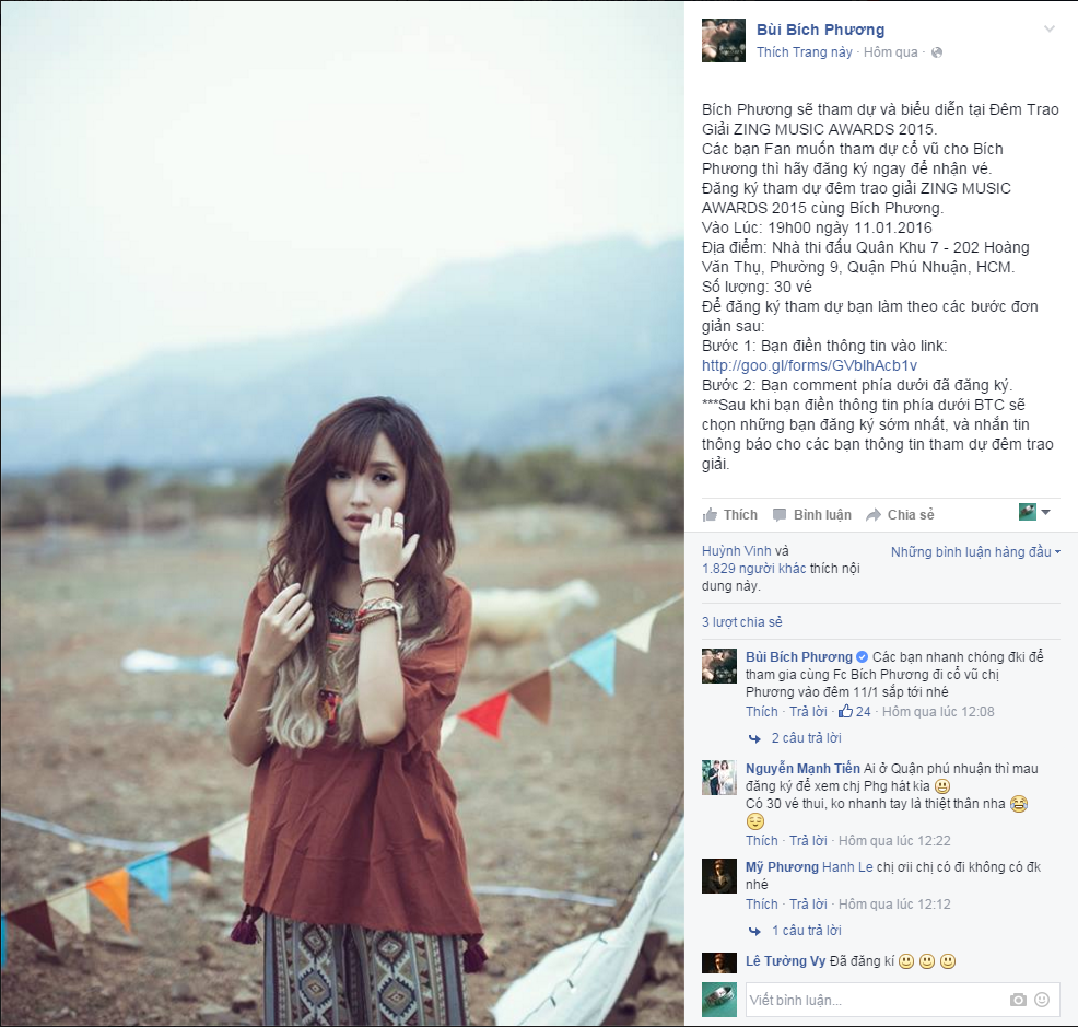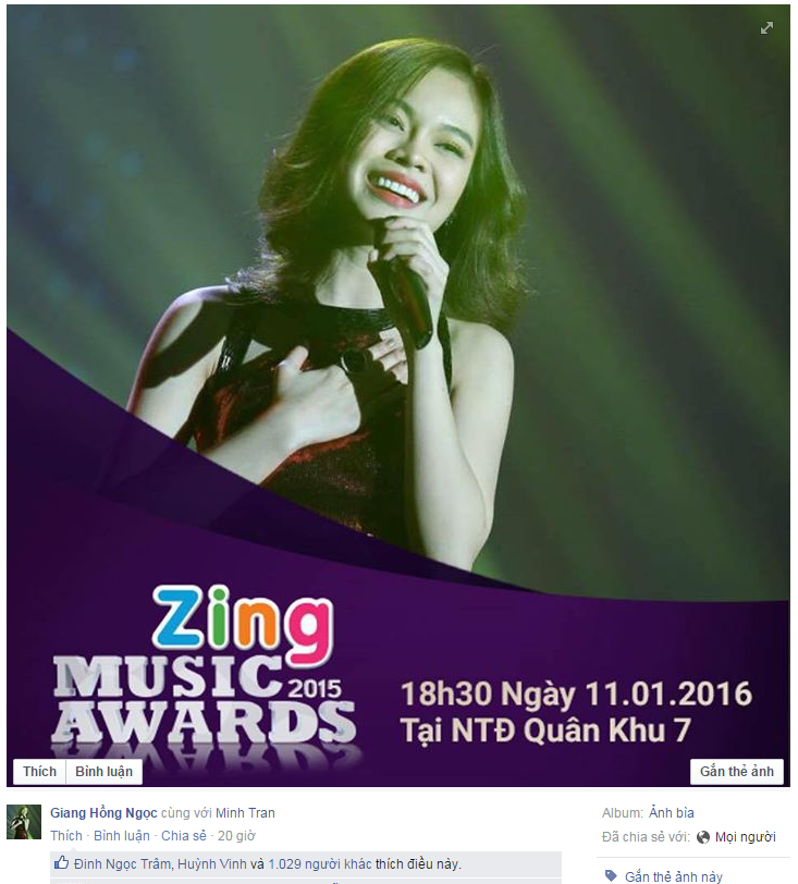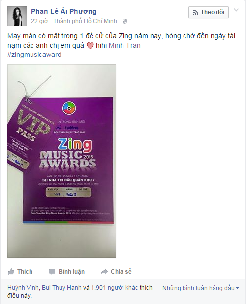 Bùi Bích Phương hiện có mặt trong đề cử Nữ ca sĩ được yêu thích nhất cùng Đông Nhi và Khởi My. Ở mùa giải năm 2014, ca khúc Mình yêu nhau đi của cô oanh tạc nhiều giải thưởng của ZMA. |