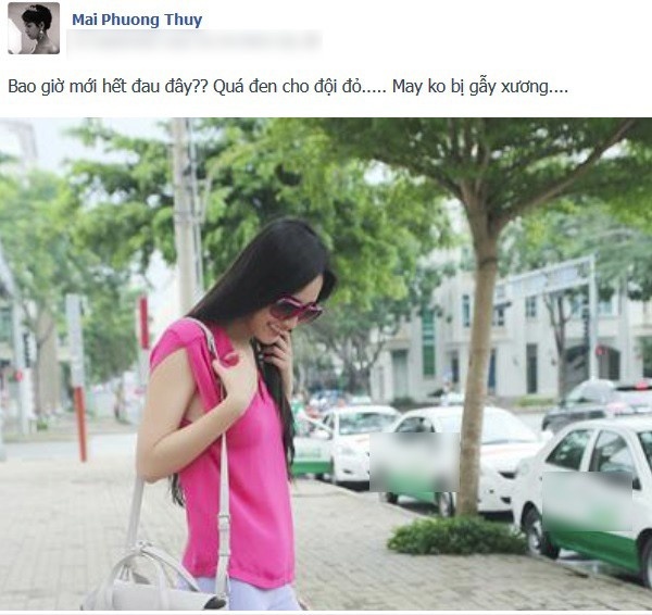 | Mai Phương Thúy kêu than vụ bị giật túi xách trên đường. |